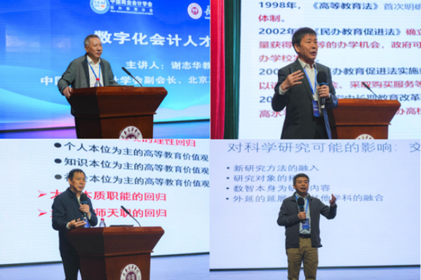 在会议主旨报告阶段,谢志华教授、王华教授、董必荣教授和袁淳教授依次作了关于“数字化会计人才培养”“践初心,守规则,办人民满意的民办高校”“课程思政:建设思路与落地路径”和“数智化背景下全国民办本科高校会计类一流专业建设”的主题报告。为共同推进民办本科高校会计类专业高质量发展建言献策。