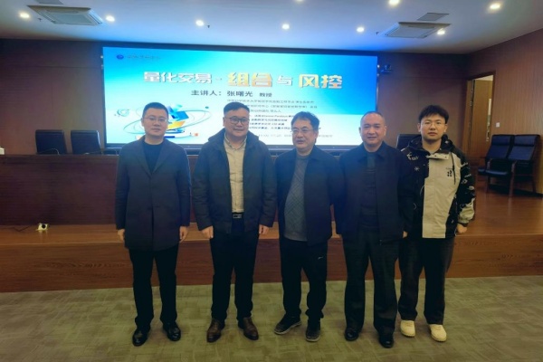 本网讯(通讯员:许梦阳 摄影:翟漱文)为响应国家关于建设教育强国、科技强国和人才强国的战略部署,推动应用型高校金融学科高质量发展,提升师生在金融科技前沿领域的科研素养与实践能力,我校特邀中国科技大学管理学院金融工程专业博士生导师、安徽省综合金融智库“中科大金融安全研究中心”主任,安徽省115金融创新团队带头人张曙光教授作题为《量化交易——组合与风控》的学术报告。会前,新华集团副总裁、校董事长王孝武会见了张曙光教授。出席报告会的有科技处、各二级单位师生代表近200人,报告会由科技处处长邱国新主持。