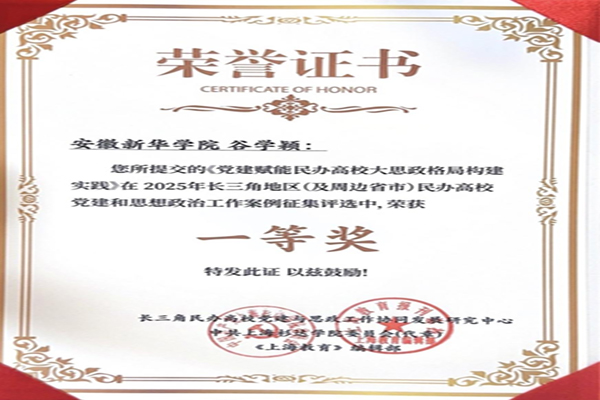 安徽新华学院党委始终牢记为党育人、为国育才使命,以财会与金融学院党委实践为典型,推动基层党组织充分发挥政治引领、组织凝聚、实践赋能作用。此次获奖既是对学校党建思政工作成效的充分肯定,更是对学校未来工作的激励与鞭策。下一步,学校将以此次获奖为契机,进一步总结提炼党建思政工作经验,深化大思政格局构建实践,不断提升党建思政工作质量,依托国家级一流本科专业建设优势,推动产教融合与思政教育深度衔接,为新时代民办高校党建和思政教育高质量发展贡献更多新华智慧和力量。